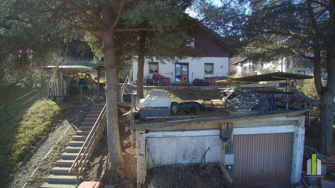 Das Haus wurde Anfang der 90iger Jahre in Holzbauweise ursprünglich als Ferienhaus auf einem 1000m² großem Grundstück errichtet.