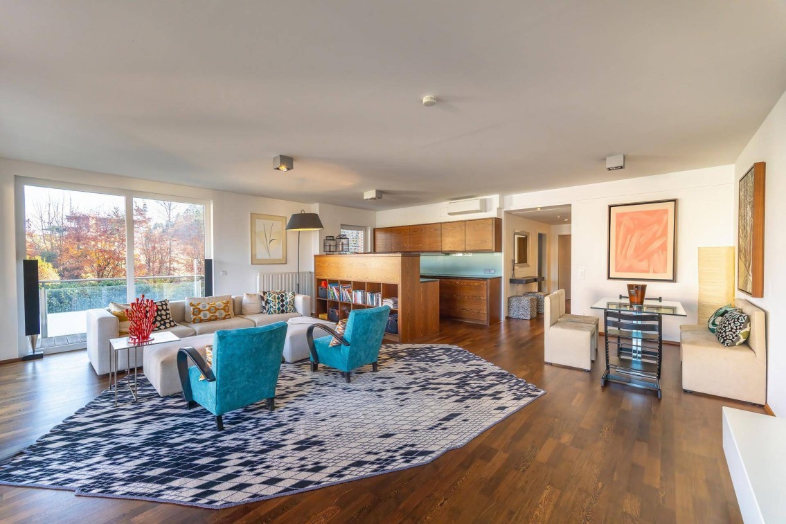 Das moderne Apartment mit einer Wohnfläche von ca. 102 m² und wunderschöner Panorama-Seeblickterrasse von ca. 27 m² befindet sich in einer erstklassig gepflegten Anlage in Velden am Wörthersee. Der traumhafte Blick auf den türkisblauen Wörthersee und in die Veldener Bucht prägt das unvergleichliche Ambiente dieser außergewöhnlichen Immobilie. Sowohl vom lichtdurchfluteten Wohn-Essbereich mit voll ausgestatteter, moderner Küche als auch von der großzügigen, überdachten Terrasse eröffnet sich ein einzigartiges Panorama über den See.