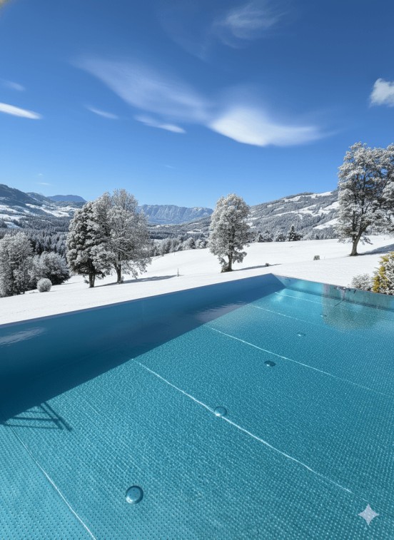 Über ein großes Schiebeelement gelangen Sie auf die 56m2 große, nahezu quadratische, neu verkleidete Südwest Terrasse, wo sofort klar wird, dass es sich um etwas ganz besonderes handelt. Ein majestätischer Blick, wie man ihn nur von Aussichtsplattformen kennt! Dem nicht genug, funkelt davor das Wasser eines 8,0m × 3,5m großen Double-Edge Infinitypools mit Gegenstromanlage, Beleuchtung und Heizmöglichkeit.