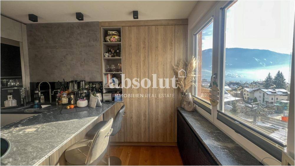 Das Herzstück, dieser hochwertig ausgestatteten Wohnung, bildet die exklusive Küche, mit vielen hochwertigen Details (z. B. eine Arbeitsplatte aus "Rauriser Stein", Teppanyaki-Grill, usw) und einen traumhaften Blick auf die Stadt und den See.