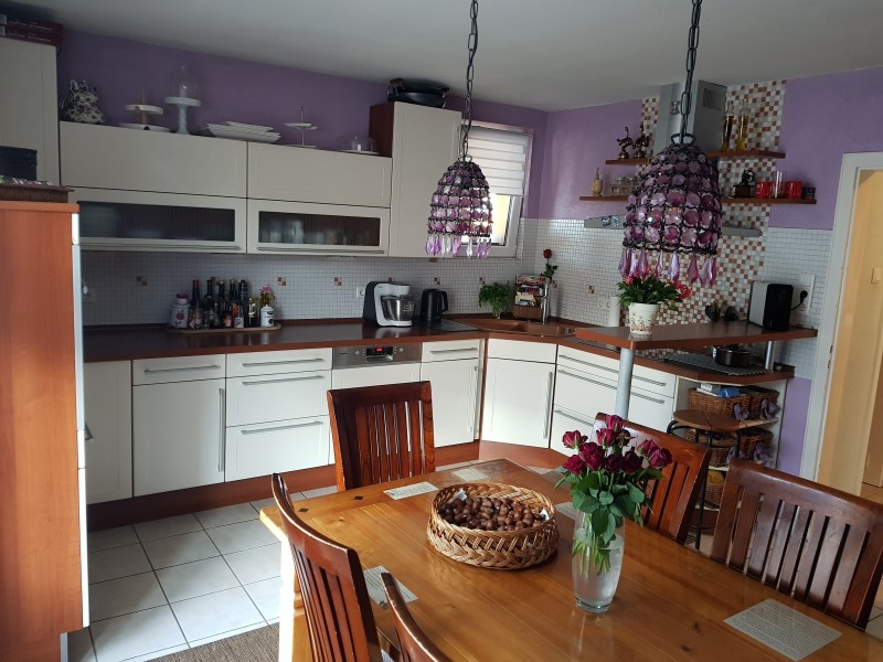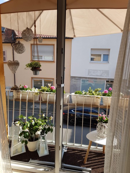 Wohnung beinhaltet insgesamt 5 Zimmer. Wohnzimmer mit grossem Fenster, Sicht zur Dürkheimer Strasse und Schule. Küche inklusive Einbauküche mit kleinem franz. Balkon, 2 Bäder, 4 Schlafzimmer. Wohnung ist voll unterkellert auf