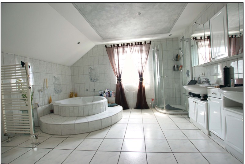 Weitere Pluspunkte liefern der einladende Wintergarten und der offene Kamin im eindrucksvollen Wohnbereich. Hier gefallen besonders die weißen Marmorböden und die hochwertige, weiße Innen-ausstattung. Ebenso überzeugt generell die großzügige Raumaufteilung, bei der vor allem die großen Schlafzimmer und das moderne Bad verantwortlich sind.