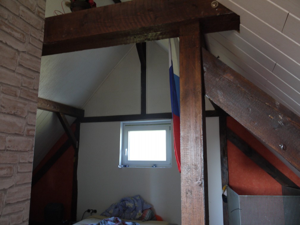 Weiter über die Treppe kommen Sie auf das Dachgeschoß mit viel Platz und schöner Decke mit Balken.