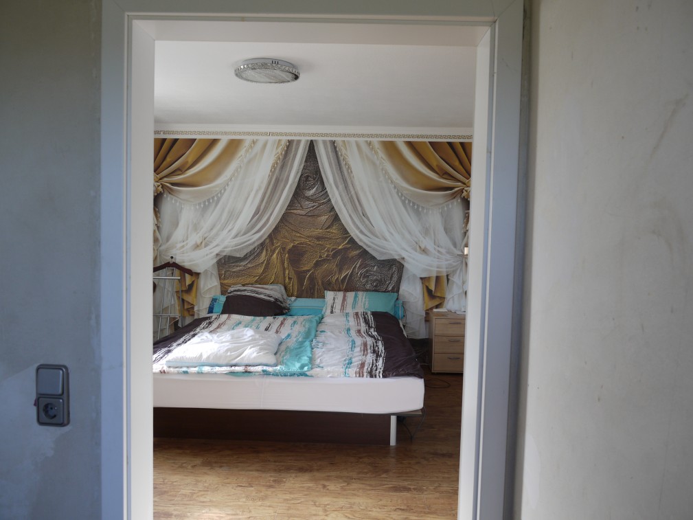 Über die Treppe gelangen Sie in das 1.OG, da sind die 2 Schlafräume, eins davon hat einen großen begehbaren Kleiderschrank. Ein WC hat die Etage ebenfalls.