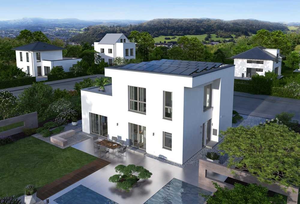 Wer das Besondere sucht, hat mit Staffel 13 sein Traumhaus gefunden. Die Flachdachvilla repräsentiert den Stil der klassischen Moderne und überzeugt sowohl innen als auch außen. Die Fassadenrücksprünge, die großzügige Verglasung und das eingezogene Obergeschoss setzen optische Akzente und stehen für eine Architektur der Extraklasse. Im Erdgeschoss begeistern die helle, nach oben geöffnete Diele sowie der große Wohn-, Koch- und Essbereich. In der oberen Etage kann der vom Eltern- und Kinderzimmer zugängliche XXL-Balkon für ungestörte Sonnenstunden genutzt werden. Besonders durchdacht präsentieren sich auch die geteilte Galerie und das von zwei Seiten begehbare Badezimmer. Ein Grundriss, der seinesgleichen sucht.
