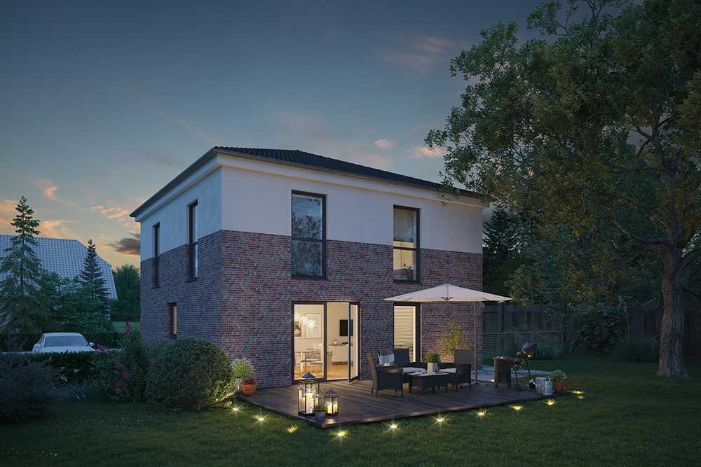 FIBAV Immobilien ist Ihr zuverlässiger Partner zur Erstellung von individuell geplanten Wohngebäuden, Stein auf Stein oder in Holzrahmenbauweise. Der Preis für das beispielhaft angebotene Haus liegt ab €229.990,00 zzgl. Baunebenkosten, Maler- und Tapezierarbeiten.