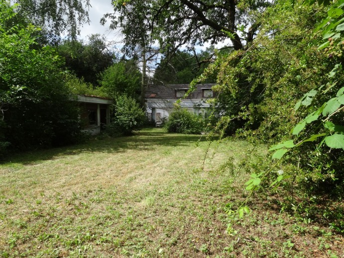 Es gibt ein Haupthaus mit einem Obergeschoss und zwei Nebengebäude im hinteren Garten. Dort wäre auch eventuell eine Pferdehaltung denkbar. Es könnten dazu noch Weideflächen gepachtet werden. Bislang war in dem großen Hintergebäude ein Partyraum mit offenem Kamin. Verschiedene Teiche und ein Pool sind vorhanden, aber noch nicht saniert.