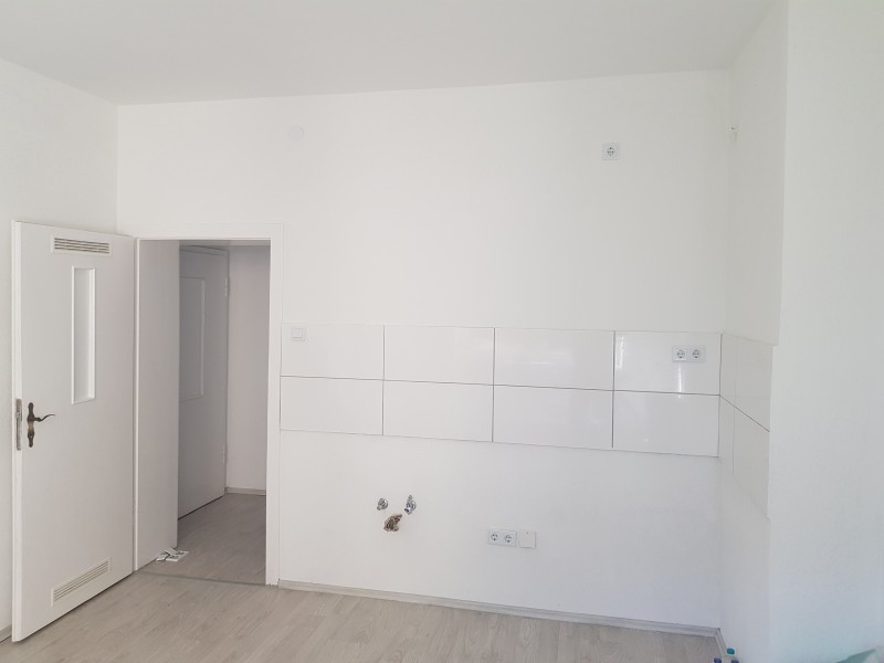 Die Wohnung wurde gründlich renoviert. Der Laminatboden ist neu verlegt, die Wände wurden neu verputzt und gestrichen, etc.