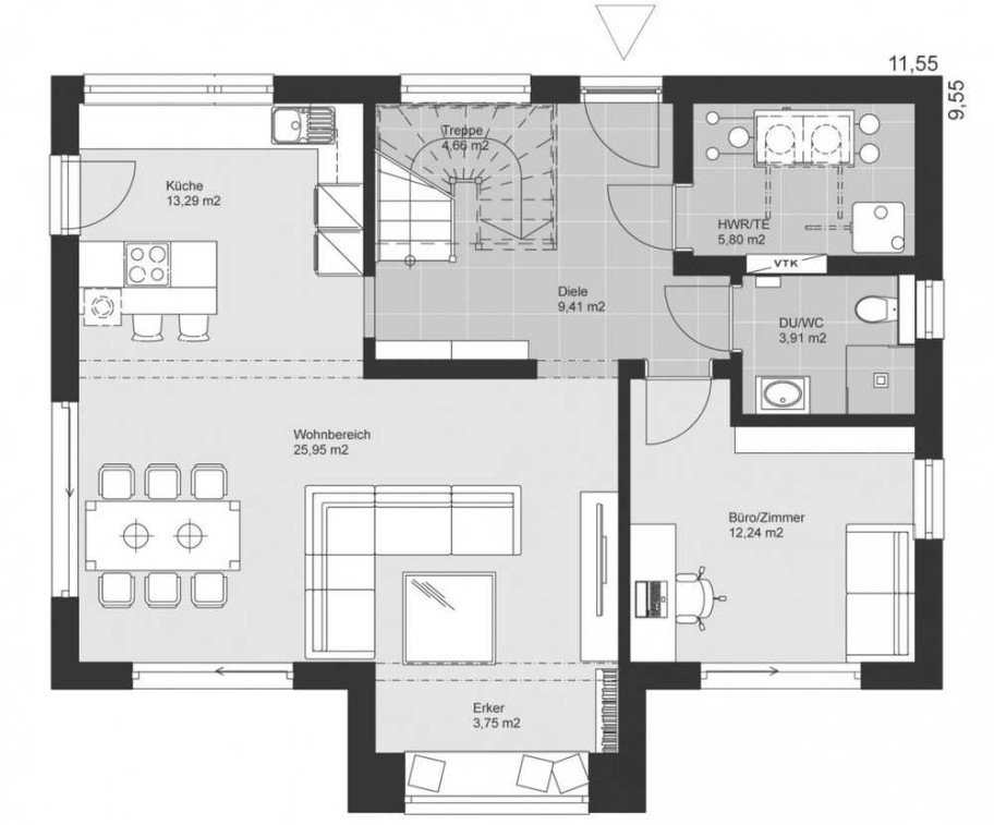 Das angebotene Haus wird belagsfertig ausgebaut. Möchten Sie den Innenausbau nicht in Eigenleistung tätigen bieten wir den Komfort vom schlüsselfertigen Hausbau.
