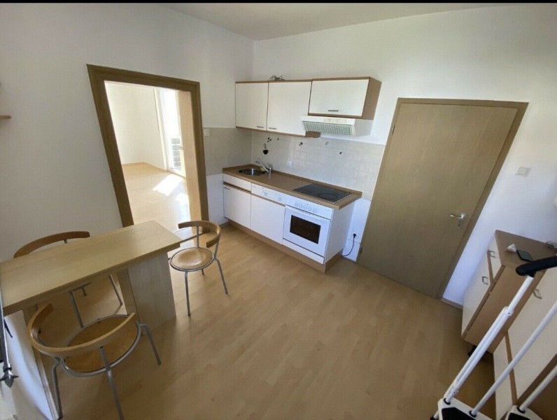 Es befindet sich eine Küche mit Backofen sowie eine Kühl und Gefrierkombination in der Wohnung.