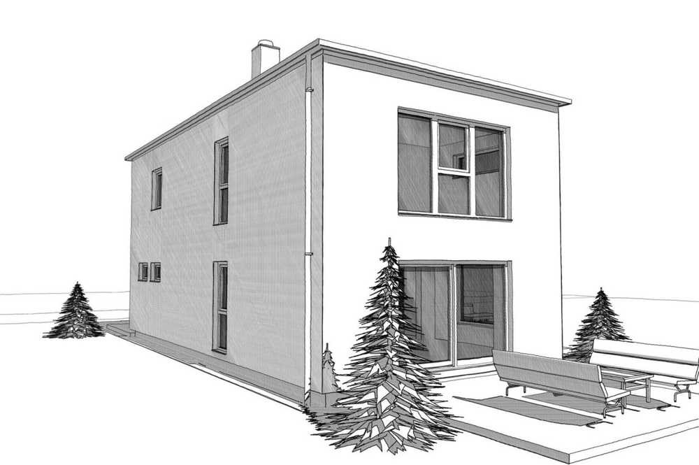 - in 2-geschossiger Bauweise mit Flachdach, 3° Dachneigung