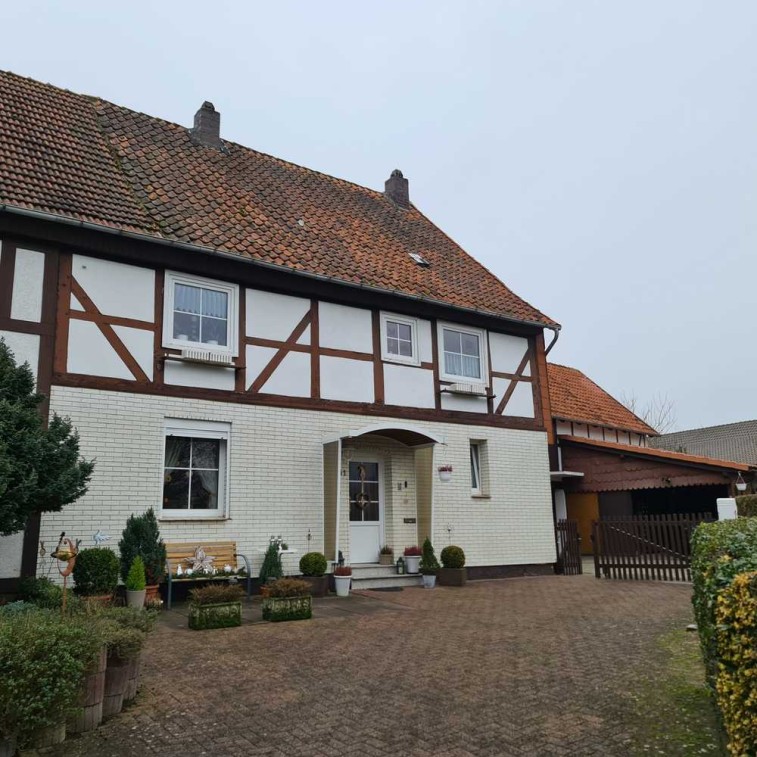 Bei dieser ansprechenden Immobilie handelt es sich um ein gepflegtes, zweistöckiges Fachwerkhaus. Es befindet sich am Ende der Straße (kein Durchgangsverkehr). Ein separates Gäste-WC zählt neben vier gemütlichen Zimmern zu den Annehmlichkeiten des Objekts. Im EG befindet sich die Küche, ein Gäste- WC, das Wohnzimmer mit offenen Balken und ein Bad mit Dusche. Im OG befinden sich 3 Räume und ein Bad mit Wanne. Im OG ist die Deckenhöhe unter 2 Meter (1,93m). Das Haus wurde 1905 erbaut und wird durch eine Gas-Heizung beheizt. Diese wurde gerade ersetzt und ist somit neu. Durch die Garage finden Sie immer einen Parkplatz und können Ihre Wocheneinkäufe bequem nach Hause tragen. Des Weiteren befindet sich auf dem Grundstück ein Carport- Anbau, sowie ein weitere Raum als Keller, Werkstatt, oder für Ihr Hobby. Für Platz zum Gärtnern, Spielen oder Sonnenbaden: Auf den ca. 600 Quadratmetern des dazugehörenden Grundstücks können Sie entspannen. Das Grundstück muss noch geteilt werden. Es besteht ein Wegerecht zum Haus über das Nachbargrundstück. Das Objekt ist zur Zeit vermietet. Kosten für Renovierungsarbeiten müssen eingeplant werden. Der Preis für die Immobilie samt Grundstück liegt bei 142.000 Euro.