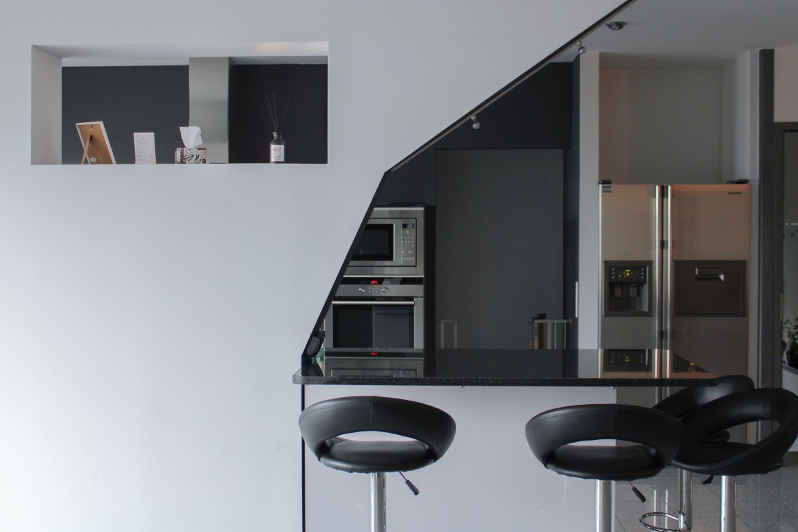 Das großzügig geschnittene Obergeschoss spiegelt den außergewöhnlichen amerikanischen Loftstil wider, da der Wohn- und Essbereich direkt mit der offenen Küche verbunden ist. Die hochwertigen Elektrogeräte sind speziell auf das Design der maßangefertigten Küchenmöbel abgestimmt, um der Zubereitung kulinarischer Köstlichkeiten keine Grenzen zu setzen.