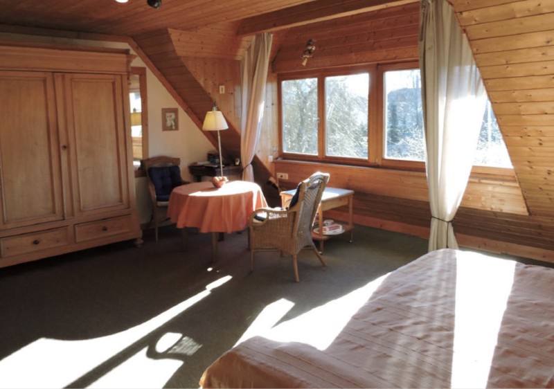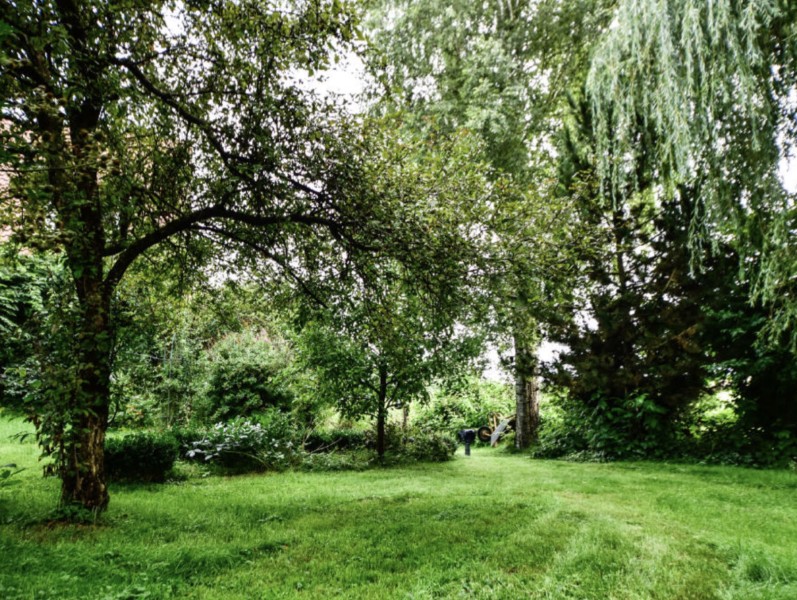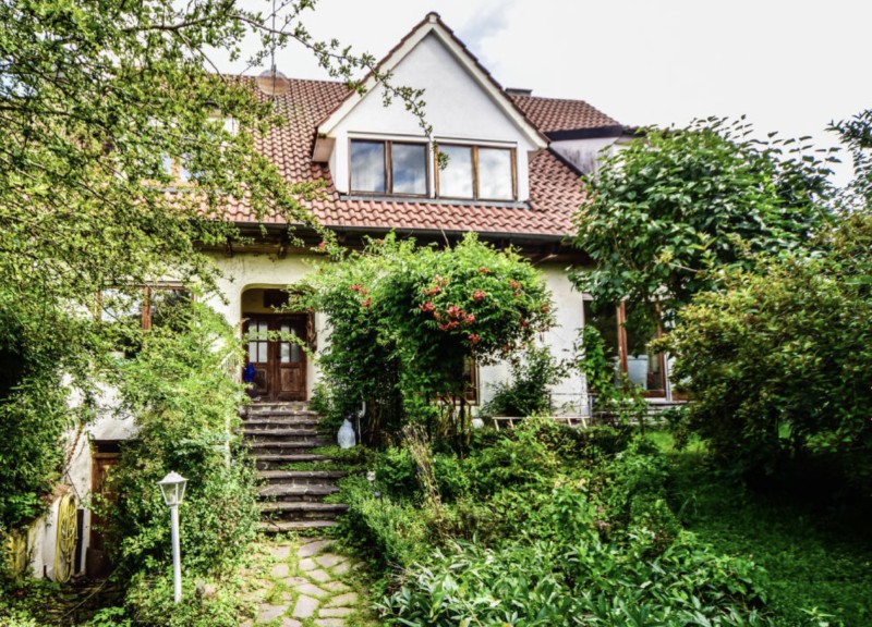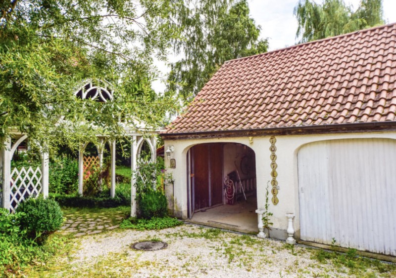 Eine weitere Besonderheit ist ein getrennter Bereich mit separatem Eingang der als Praxis, Werkstatt, Verkaufsraum etc. genutzt werden kann. Außerdem verfügt das Anwesen über eine freistehende, sehr geräumige Doppelgarage mit einer Montagegrube in einer der Garagen sowie einem großen Stauraum über den Garagen unter dem zimmermannsmässig massivem Holzsatteldachstuhl mit Zugang über einen elektrischen Aufzug an der Giebelwand. Im idyllischen und liebevoll angelegten großen Garten mit altem, eingewachsenen Baum- und Sträucherbestand gibt es zahlreiche schöne Sitzgelegenheiten, zwei große Terrassen und einen Gemüsegarten sowie ein Holzgartenhaus für Gartengeräte oder als gemütliche Laube.
