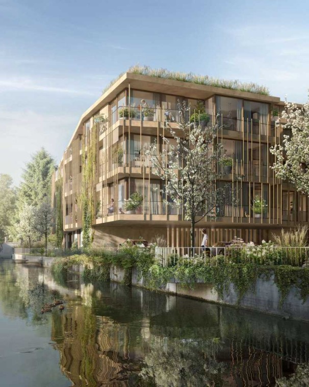 Ein Grundstück direkt am Wasser gelegen und doch mitten in der Stadt – eine so erstklassige Lage verdient eine Bebauung, die sich abhebt. Und das wortwörtlich. Deshalb haben wir mit WOHNEN AM MÜHLBACH einmal mehr kreuz und quer gedacht und ein Wohngebäude entworfen, das sich an der Expertise und Schönheit der Natur orientiert. Ein Haus gleich einem »fliegenden Vogelnest«.