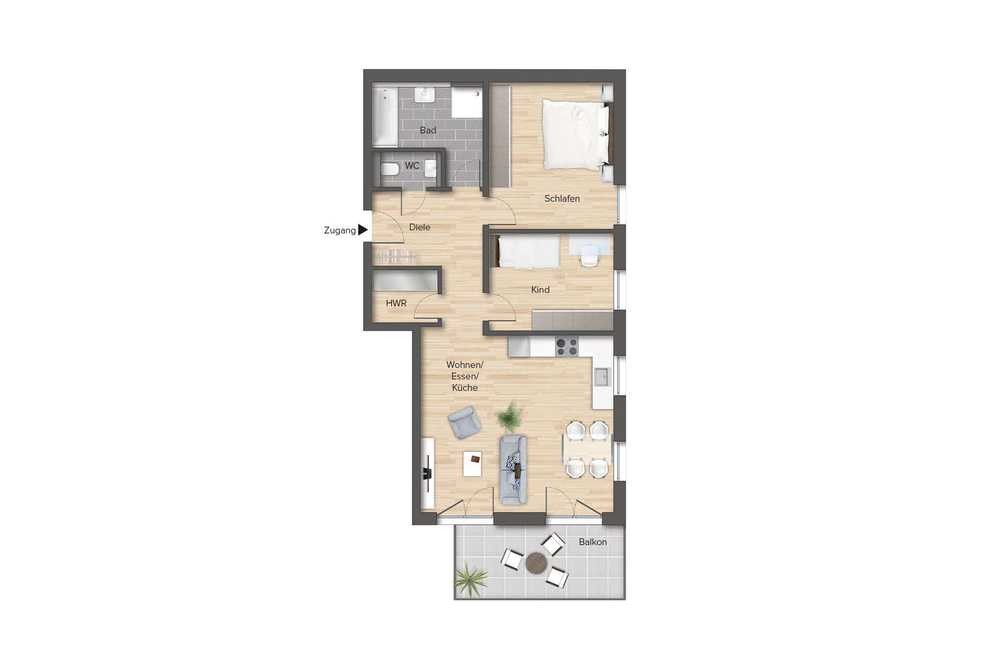 Alle Wohnungen sind mit großzügigen Grundrissen geplant. Durch die großen Fensterflächen sind die Wohnräume lichtdurchflutet und hell - ein wunderbares Wohngefühl.