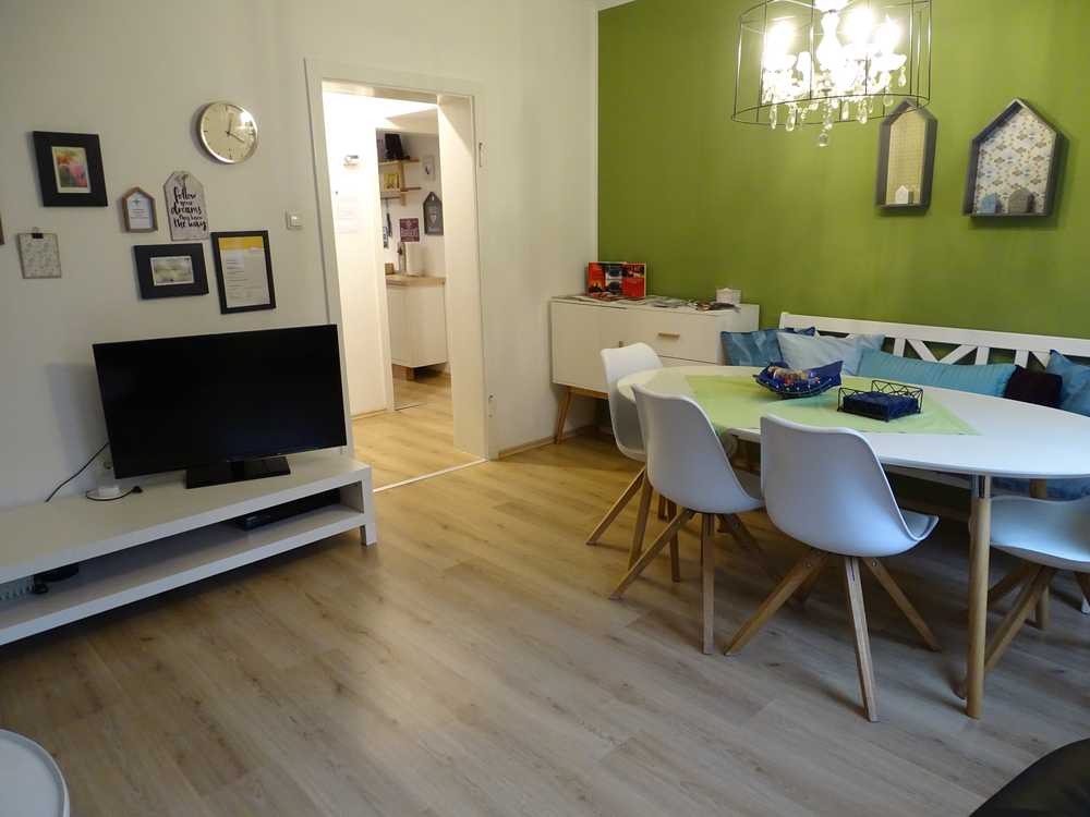 Helle und moderne 3 Zimmerwohnung in Zentrumsnähe. Die angebotene Wohnung wurde saniert und ist hell und lichtdurchflutet. Die Wohnung ist aufgeteilt in einen Wohnraum eine moderne Küche, 2 Schlafzimmer, 1 Wannenbad, Flur. Weiße doppelisolierte Kunststofffenster, Bodenbelag hochwertiges Laminat. Kellerraum. Die Wohnung befindet sich im 2. OG.