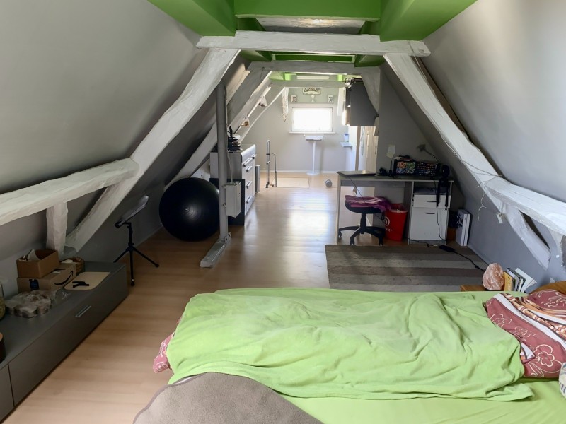 .Gewölbekeller, Garage und Heizungskeller im EG .3 Stockwerkiges Fachwerkhaus Dach Isoliert,und erneuert.fassade vwsd 100 m Dämmung isoliert.Kamin erneuert,Küche EZ, WZ gefliest.SZ Laminatboden montiert.Küche mit Miele/siemens Geräten erneuert..Obere Stockwerk Bad/WC neu gebaut. Küchenische vorbereitet.Dachgeschoss ausgebaut mit begehbarer Kleiderschrank.Für 2 generationen ausreichend Platz vorhanden.