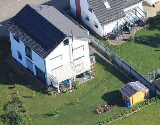 - hocheffiziente Luft Wasser Wärmepumpe gekoppelt mit einer 7,2 kwH Photovoltaikanlage & 10kwH Batteriespeicher