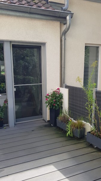 Die Wohnung befindet sich zur Straße hin im 2. Stock und nach hinten zur Grünfläche ebenerdig. Dies ermöglicht auch eine schöne ruhige Terrasse mit Blick aufs Grüne, welche 2020 erst neu gerichtet wurde. Die Wohnung ist offen und hell gestaltet sowie sehr geräumig. Die Wohnung selbst entstand 2000 aus einem Atelier, so dass alle Wasser- und Stromleitungen höchstens aus diesem Jahr stammen. Die Küche, der Flur sowie das Wohnzimmer wurden 2020 komplett renoviert (inkl. neuen Tapeten, Dämmung, Echtholzparkett, Decke und neuen Smartlampen). Die anderen Zimmer sind noch im Stand von 2000 und auch direkt bezugsfertig.