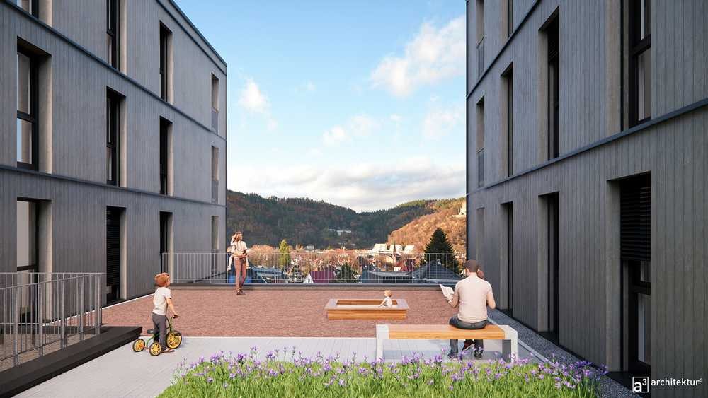 In der Nähe der Stadtmitte Waldkirchs, entstehen zwei Mehrfamilienhäuser mit insgesamt 32 Wohneinheiten in einer moderierten Bauherrengemeinschaft.