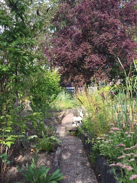 Im vorderen Grundstücksbereich befindet sich der große, idyllisch angelegte Naturgarten mit Gartenteich. Im hinteren Grundstücksbereich befindet sich ein weiterer Garten mit Gartenhaus, welcher die direkte Verbindung zur großzügigen Terrasse herstellt, welche sowohl vom Wintergarten, als auch von der Küche aus begehbar ist.