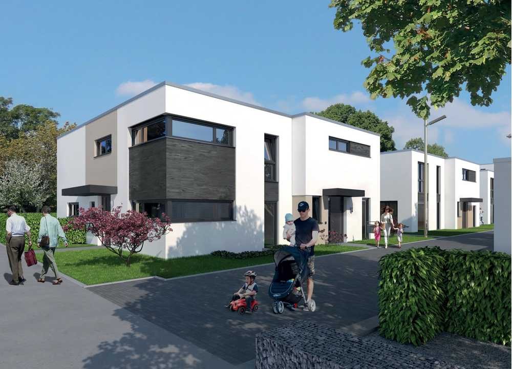 Individuell an Ihre Bedürfnisse und Wünsche angepasst errichten wir 5 freistehende Einfamilienhäuser sowie 20 Doppelhaushälften schlüsselfertig. Wir haben drei unterschiedliche Haustypen entwickelt, freistehende Einfamilienhäuser mit Flachdach, Doppelhäuser mit Flachdach sowie Doppelhäuser mit geneigtem Dach. Es ergeben sich durch die individuellen Entwurfsmöglichkeiten eine Vielzahl von Varianten, ob Eingang von der Seite oder von vorne, mit einem weiteren Wohnraum im UG und tollen Räumen im Dachgeschoss. Die Häuser mit Flachdach werden in der Regel über drei Ebenen, die Häuser mit geneigtem Dach über vier Ebenen, vom Untergeschoss bis zum I. Obergeschoss oder bis zum Dachgeschoss, errichtet. Die Häuser sind konzipiert für zwei- bis sechsköpfige Familien, die auf ein aufgeschlossenes, modernes, großzügiges Wohnen in einem zeitgemäßen Stil Wert legen. Zu jedem Einfamilienhaus gehören eine Garage und ein separater Stellplatz, so dass das Abstellen von zwei Fahrzeugen kein Problem darstellt.