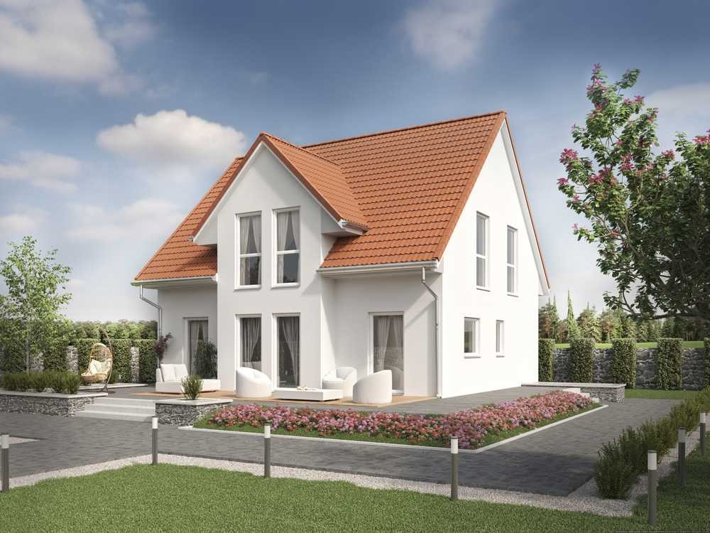 Das Titelbild zeigt eine Variante. Der angegebene Preis versteht sich zuzüglich Maler- und Teppicharbeiten, Hausanschluß- und Baunebenkosten sowie Außenanlagen wie Terrasse, Zuwegung Carport oder Garage.