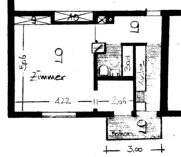 3. Obergeschoß eines Mehrfamilienhauses mit Balkon
