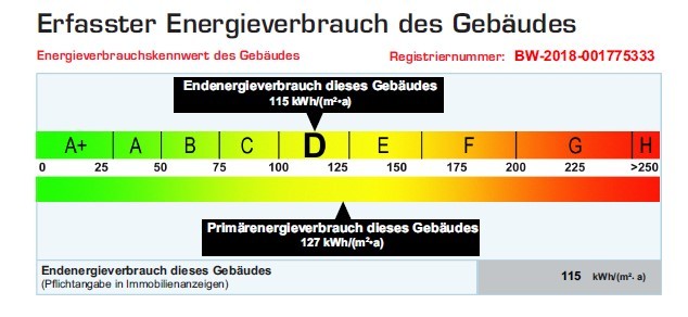 | Endenergiebedarf: | 115,00 kWh/(m²*a) |