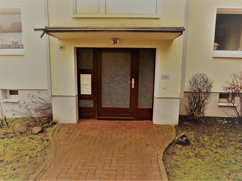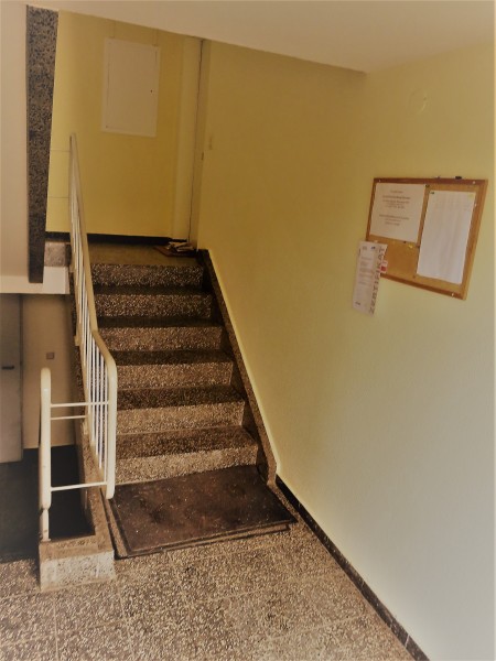 Zugang vom Hauseingang über ein gepflegtes Treppenhaus mit Steintreppe.