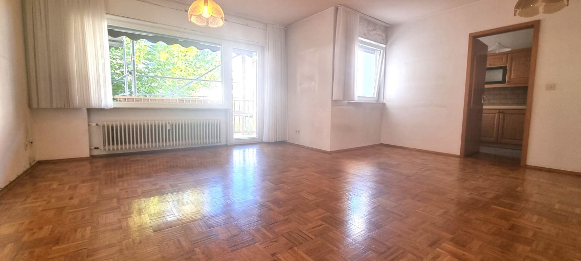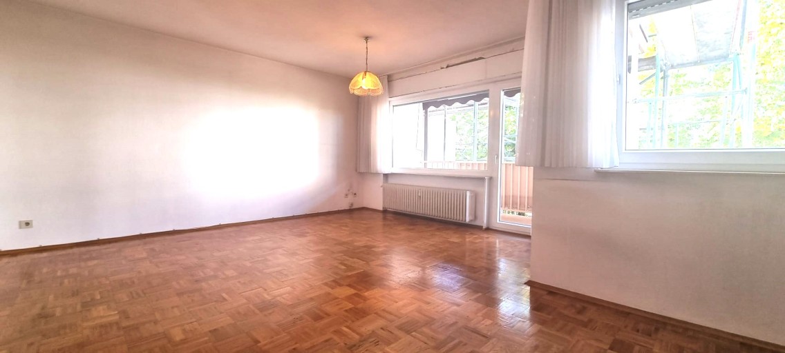 Vom großzügigen Wohnzimmer mit separater Küche haben Sie Zugang auf den großen West-Balkon mit und mit Blick ins Grüne.