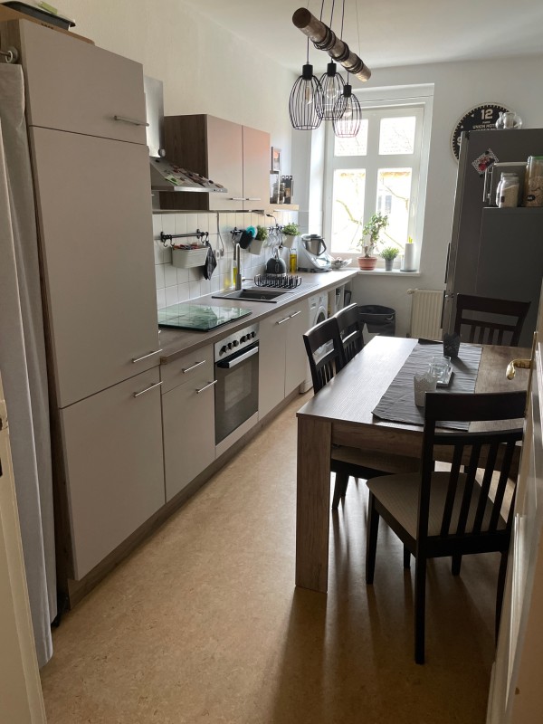 Die Wohnung wird unmöbliert angeboten - die Küche ist jedoch Bestandteil des Angebotes (inkl. Stühlen und dem Tisch, exkl. freistehender Kühlschrank und Waschmaschine).
