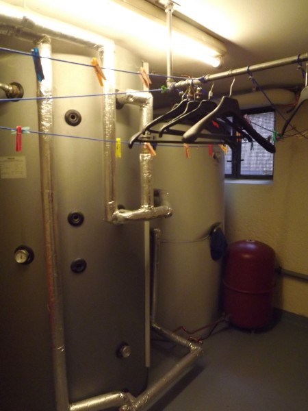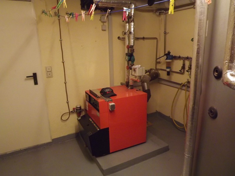 Die beiden Häuser verfügen über 2-fach verglaste Fenster. Die Heizung im neuen Haus besteht aus einer Ölzentralheizung aus dem Jahre 1983 und einer Holzscheitheizung, die 2006 montiert wurde. Die beiden Pufferspeicher sind groß genug, dass beide Häuser über eine Heizung beheizt werden könnten.