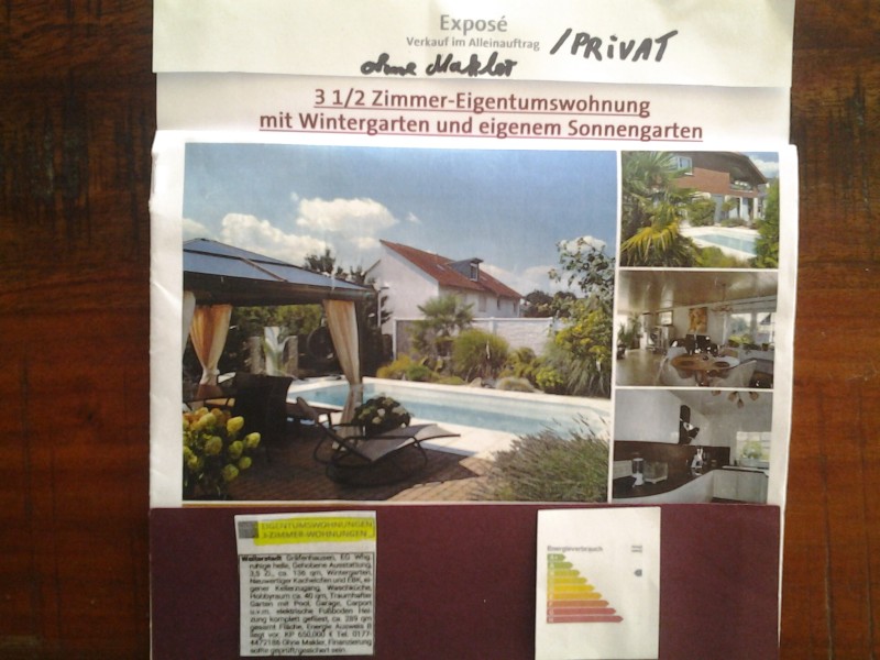 Verkauft wird in Weiterstadt -Gräfenhausen, im Landhausstil(3P) helle,ruhige, 3,5 ZImmer (2 Schlafz.Bad,Dusche von Villeroy+Boch, Ital.Fliesen,grosses Wohn/Esszimmer,Wintergarten,neuwertige U-Förmige Einbauküche ,ca.136qm.Neuwertiger Kachelofen 12Kw (Budderus),eigener Kellerzugang -Waschküche,Hobbyraum,ca.40qm. , sowie eigener Garten m.Pool6,50x3x1,40m.Pavillion u.Gartenmöbel,Gartenhaus.Garage/Carport/