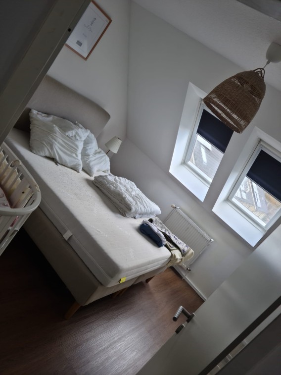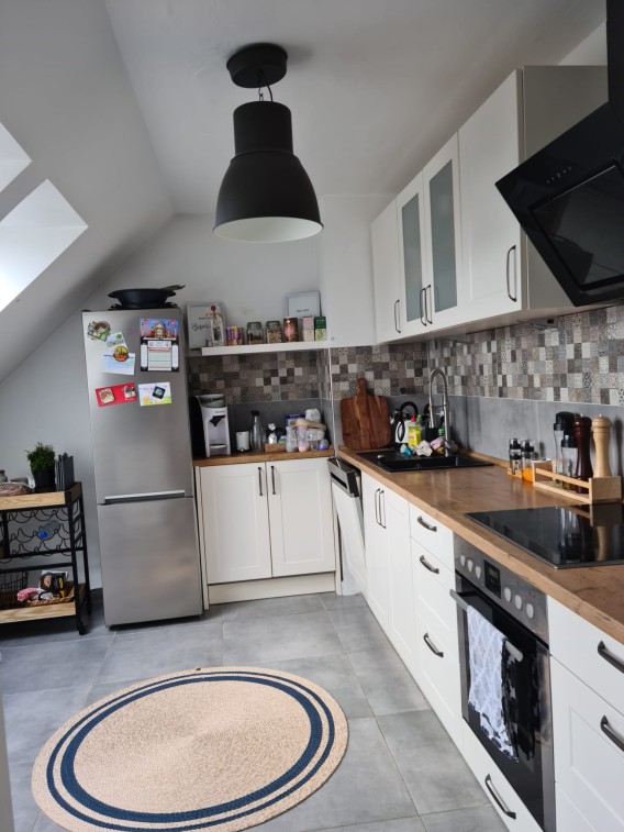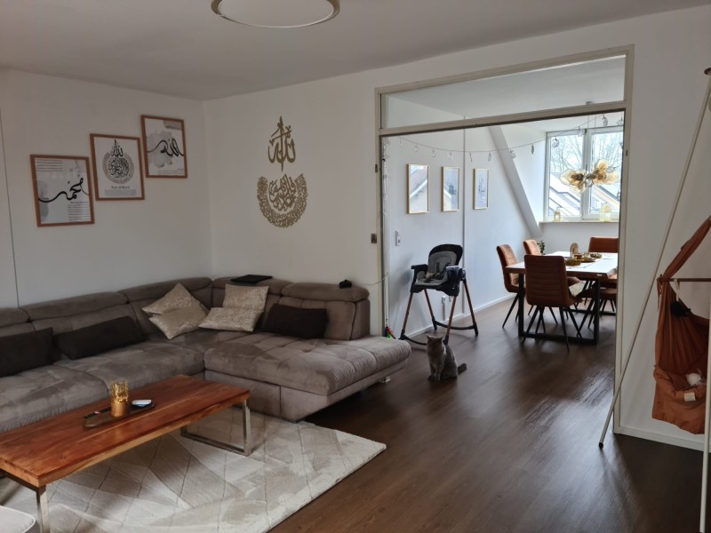 Trotz Dachgeschosswohnung gibt es wenig Dachschrägen, die das stellen von Mobiliar beeinträchtigen könnten.