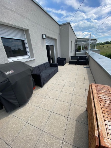 Ab sofort können Sie diese freundliche, neuwertige Dachgeschosswohnung im zweiten OG erwerben, die durch eine gehobene Innenausstattung besticht. Ein Badezimmer und ein separates Gäste-WC zählen neben vier einladenden Zimmern zu der Wohnung. Durch einen Fahrstuhl gelangen Sie bequem ins entsprechende Stockwerk und das Apartment ist barrierefrei zugänglich. Bei der Heizungsart der Eigentumswohnung, die sich in einem 2019 erbauten Haus befindet, handelt es sich um eine Fußbodenheizung. Der Energieausweis der Immobilie ist aktuell und liegt vor. Das monatliche Hausgeld beträgt 405,00 €. Zur Wohnung gehören eine Dachterrasse und auch eine Einbauküche, sodass Sie keine eigene Küche kaufen müssen. Auf dem zum Haus dazugehörigen Stellplatz können Sie Ihr Auto bequem parken (Der Stellplatz ist im Kaufpreis enthalten). Ein Kellerraum bietet genügend Stauraum für eingelagerte Gegenstände. Die Eigentumswohnung kann provisionsfrei von privat übernommen werden.