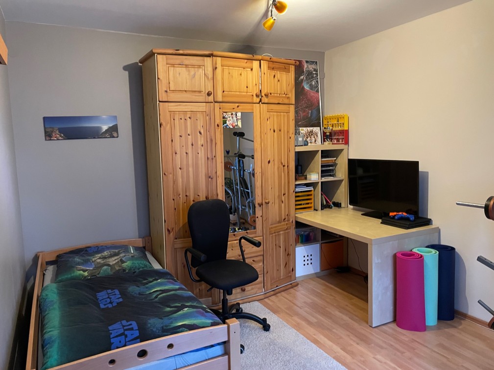 Der Bodenbelag besteht aus Laminat in den Zimmern und Fliesen in Flur, Küche und Badezimmern.