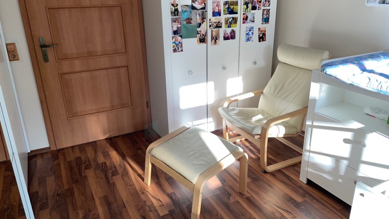 Die Wohnung besitzt ebenfalls hochwertige Zimmertüren mit zwei platzsparenden Schiebetüren.