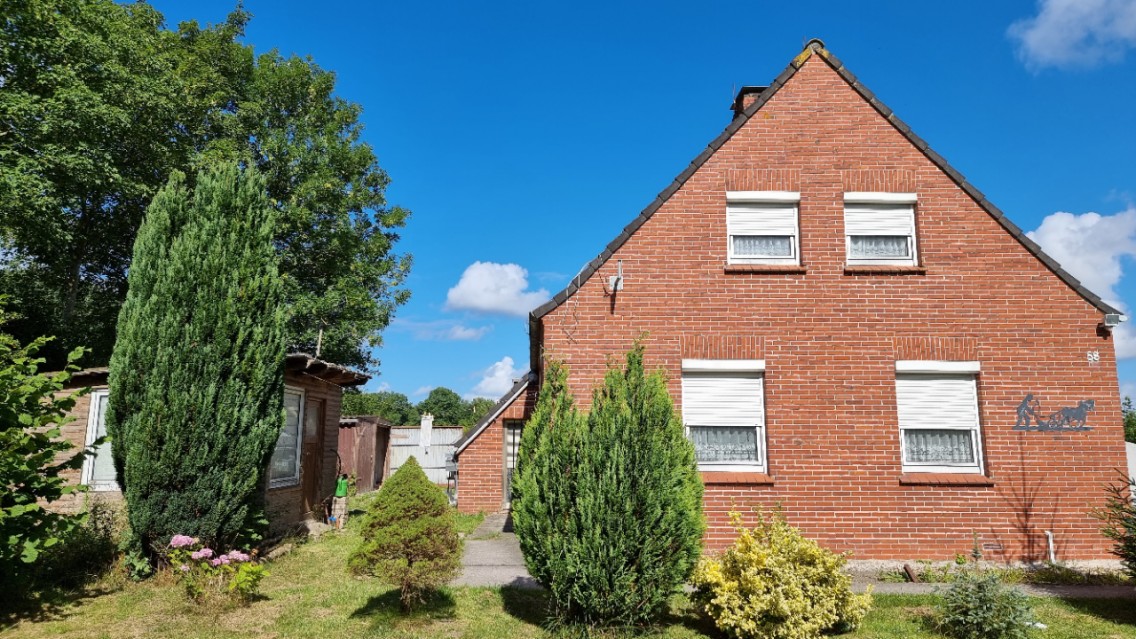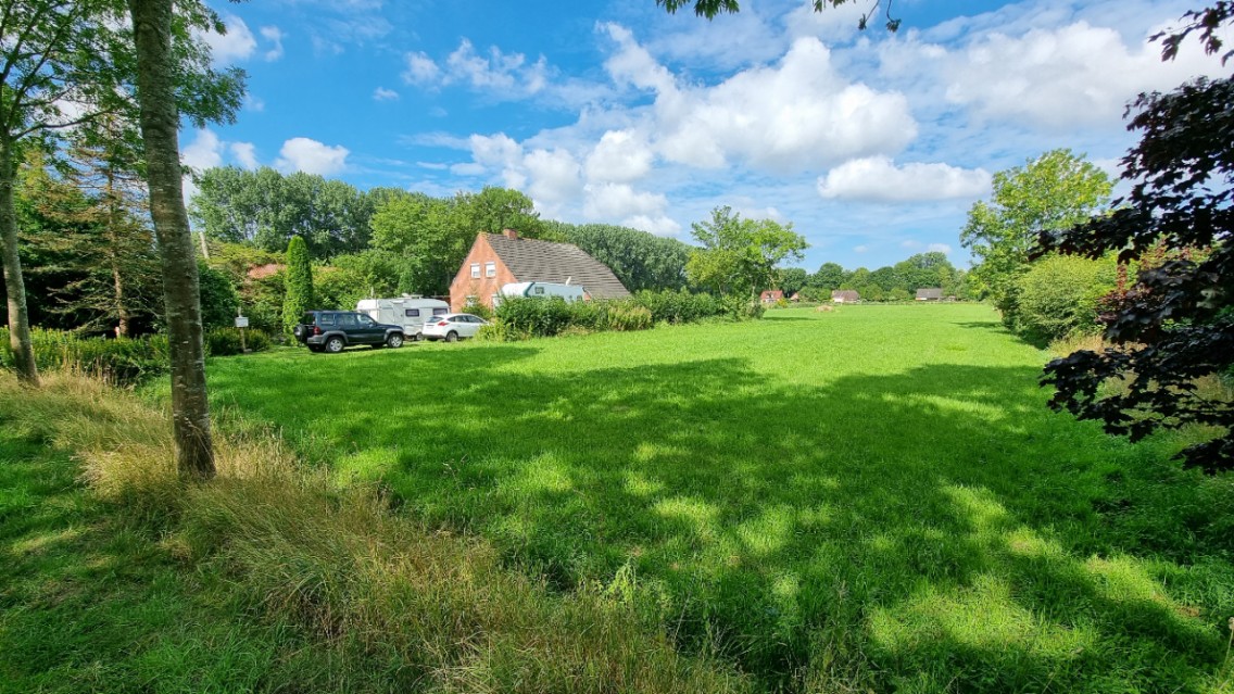 Die gesamte Grundstückfläche beträgt 8.200 qm und wurde 1959 mit einem Friesenhaus auf 1.300 qm (95 Euro/qm) Fläche bebaut. Eine weitere Fläche von 1.300 qm (95 Euro/qm) steht für weitere Neubau-Maßnahmen zur Verfügung.