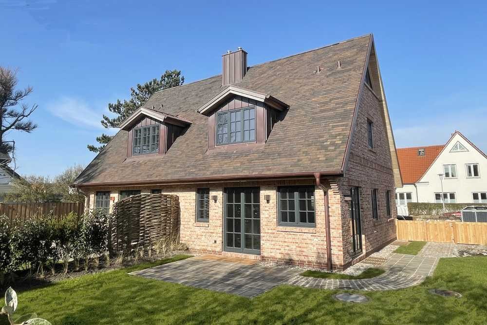 Der Garten wird mit einer sylttypischen Bepflanzung versehen. Die freien Flächen sind mit Rollrasen ausgelegt.