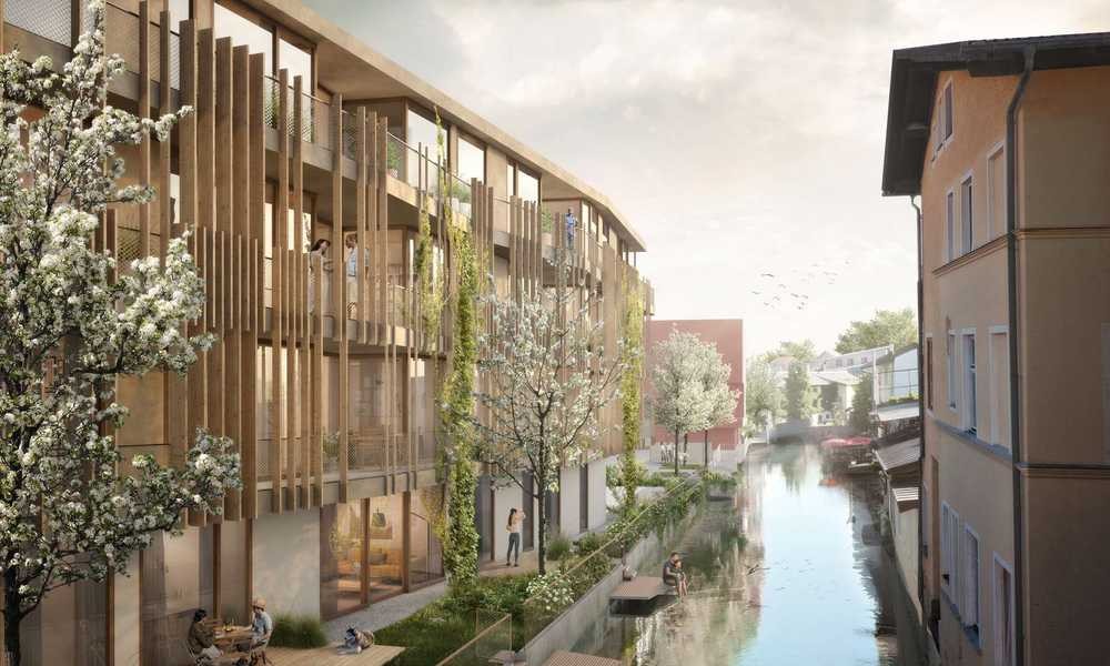 Eine Besonderheit des Projekts sind die Gartenwohnungen direkt am Wasser mit Stegplattformen.