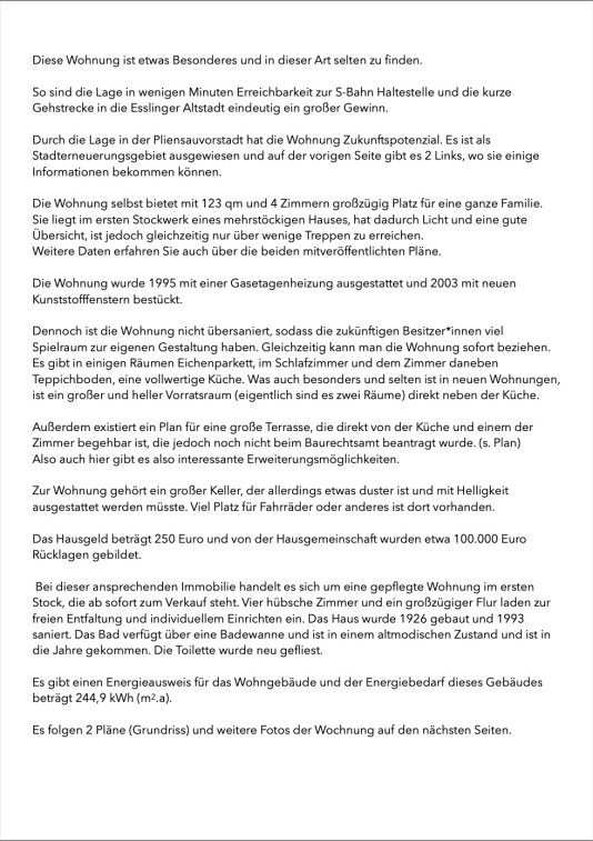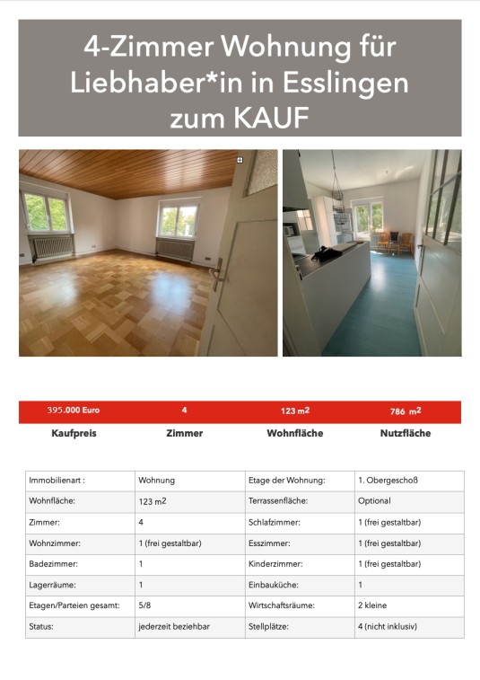Durch die Lage in der Pliensauvorstadt hat die Wohnung Zukunftspotenzial. Es ist als Stadterneuerungsgebiet ausgewiesen und auf der vorigen Seite gibt es 2 Links, wo sie einige Informationen bekommen können.