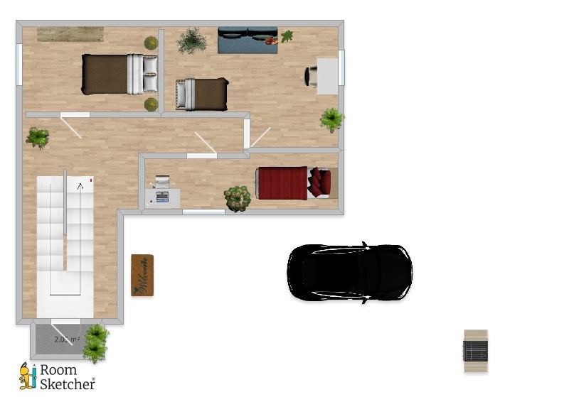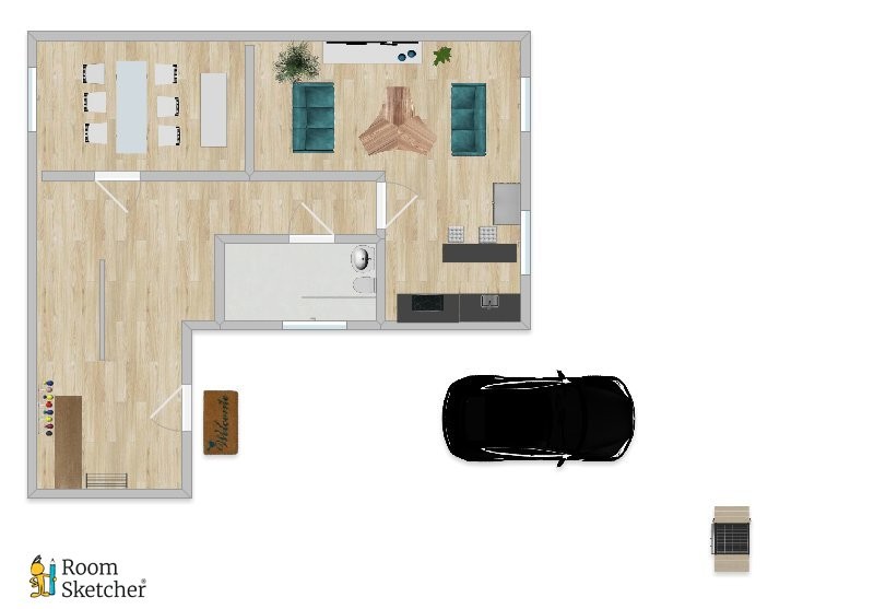 Die ca. 85-90 qm Wohnfläche, die mit Fußbodenheizung beheizt wird, verteilt sich hierbei über das Erd- und Obergeschoss und bietet mit seiner durchdachten Zimmeraufteilung viele Möglichkeiten. Durch den Vorbau mit Garderobe betritt man das Erdgeschoss, welches über eine offene Küche inkl. Wohnzimmer, ein Esszimmer und ein Tageslicht-Badezimmer mit eine Bodentiefedusche und WC verfügt. Der helle, mit LED Spots beleuchtete und mit einem schönen Laminat ausgelegte Wohnbereich und eine offene Küche bildet das Herzstück der unteren Etage.