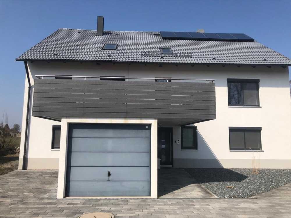 Das 1.Obergeschoss hat eine wunderschöne Terrasse oberhalb der Garage ,die mit Holz verlegt ist und einen Balkon mit Blick auf den Garten.