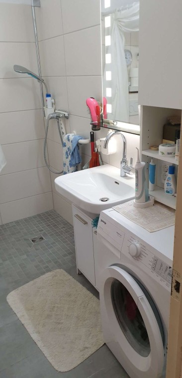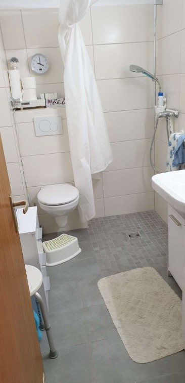 Das Bad wurde 2018 als Seniorenbad mit einer ebenerdigen Dusche umgestaltet.