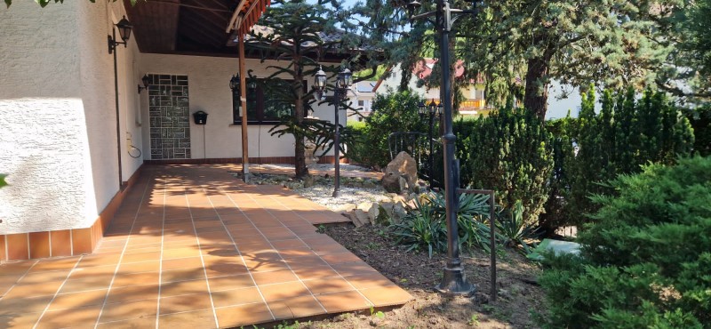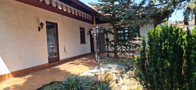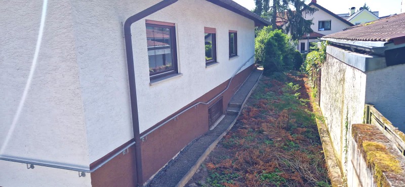 Das freistehende Einfamilienhaus (Bungalow) steht in ruhiger Wohnlage auf einem Sonneneckgrundstück in Laudenbach mit 509 m² und mit einer großen Garage.