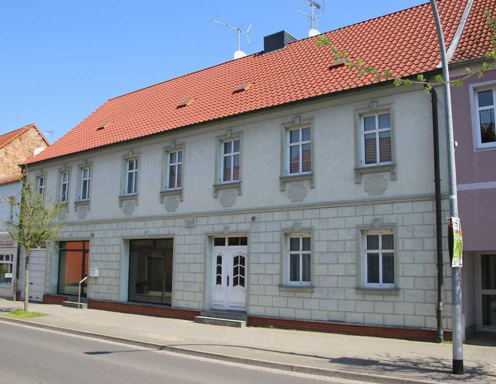 Das zentral gelegene Wohn- und Geschäftshaus wurde ca. 1847 in Massivbauweise errichtet. Es ist teilunterkellert und kann kurzfristig bezogen werden. Im Haus befinden sich zwei Gewerbeeinheiten im Erdgeschoss (ein kleines Büro und ein Ladengeschäft) mit insgesamt 124 m² Nutzfläche sowie zwei Wohneinheiten im Obergeschoss mit zusammen 204 m² Wohnfläche), welche von den Eigentümern bewohnt wurden. Das Ladengeschäft war bis zuletzt als Boutique vermietet und bietet mit einer Fläche von ca. 78 m² Potenzial für eine Vermietung. Das Büro im EG rechts hat eine Größe von ca. 46 m² und wurde von der Heizungs- und Sanitärfirma der Eigentümerfamilie, welche im Nebengebäude auf dem Hof ihren Firmensitz hatte, genutzt. In den Jahren nach 1990 wurde die Immobilie Stück für Stück modernisiert. So wurde die Fassade zur Straßenseite neu instandgesetzt, Kunststofffenster eingebaut und das Dach straßenseitig mit Tondachziegeln eingedeckt. Im Keller wurde eine Gas-Zentralheizung mit Warmwasserspeicher für die gesamte Immobilie sowie eine Sauna, ein WC und eine Dusche eingebaut. Im Ladengeschäft gibt es eine Fußbodenheizung. Das Büro und die Wohnungen besitzen Standardheizkörper. Die gesamte Heizungsanlage und fast alle Sanitärbereiche wurden ebenfalls erneuert. Das auf dem Hof befindliche massive Nebengebäude in Sichtmauerwerk (Klinker) mit einer Nutzfläche von ca. 105 m² wurde früher als Werkstatt genutzt und bietet dem zukünftigen Erwerber jede Menge Potenzial. Ob als Ausbaureserve oder Platz für Hobby, Freizeit oder Gewerbe: dieses Gebäude hat Charme und wartet auf kreative Ideen. Ein zweites ehemaliges Stallgebäude mit einer Nutzfläche von knapp 50 m² diente zum Schluss als Lager sowie Mitarbeiter-WC. Ein kleiner Teil des Grundstückes wurde als Garten genutzt. Weitere Lager- bzw. Abstellmöglichkeiten sind vorhanden. Am ca. 648 m² großen Grundstück liegen alle Versorgungsmedien an. Auf Grund der Grenzbebauung ist das Grundstück eingefriedet.