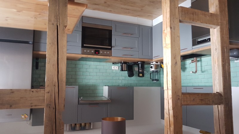 Fachwerk wurde freigelegt und saniert. Venylboden mit Nässeschutz, Härtegrad 3.