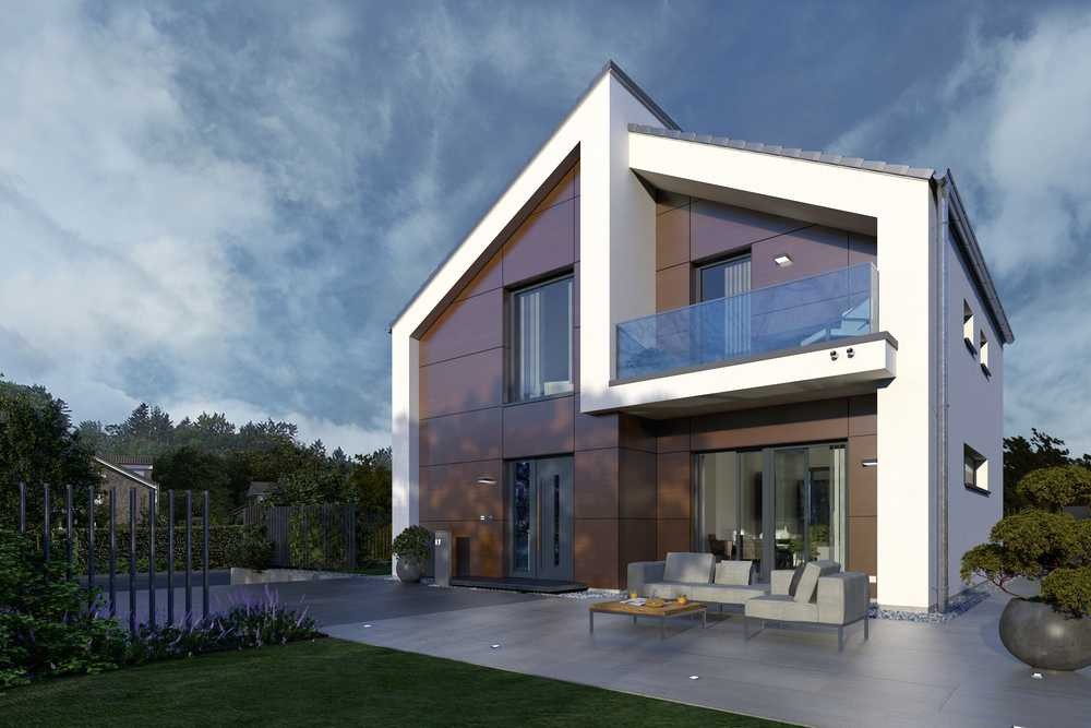 Schon von außen ein echtes Highlight! Die Fassade besticht durch ihre moderne, durchdachte und außergewöhnliche Architektur. Durch den besonderen Grundriss mit einem eingerückten Bereich entstehen sowohl auf der Vorder- als auch auf der Rückseite zwei windgeschützte Terrassenbereiche. Extravaganz und Eleganz in Vollendung. Das trifft auch auf das Innere zu: Hier überzeugt die durchdachte Raumaufteilung ebenso wie der großzügige Schnitt mit einem großen Wohn-Koch-Bereich und sich anschließendem Wohnzimmer. Komplettiert wird das Erdgeschoss durch einen Hauswirtschaftsraum sowie ein Gäste-WC. Über die zentral gelegene Treppe erreicht man das Obergeschoss mit Galerie, Elternschlafzimmer, einem großen Badezimmer mit Badewanne und Dusche sowie zwei Kinderzimmern. Ein absolutes Highlight: der große Balkon mit edlem Glasgeländer.